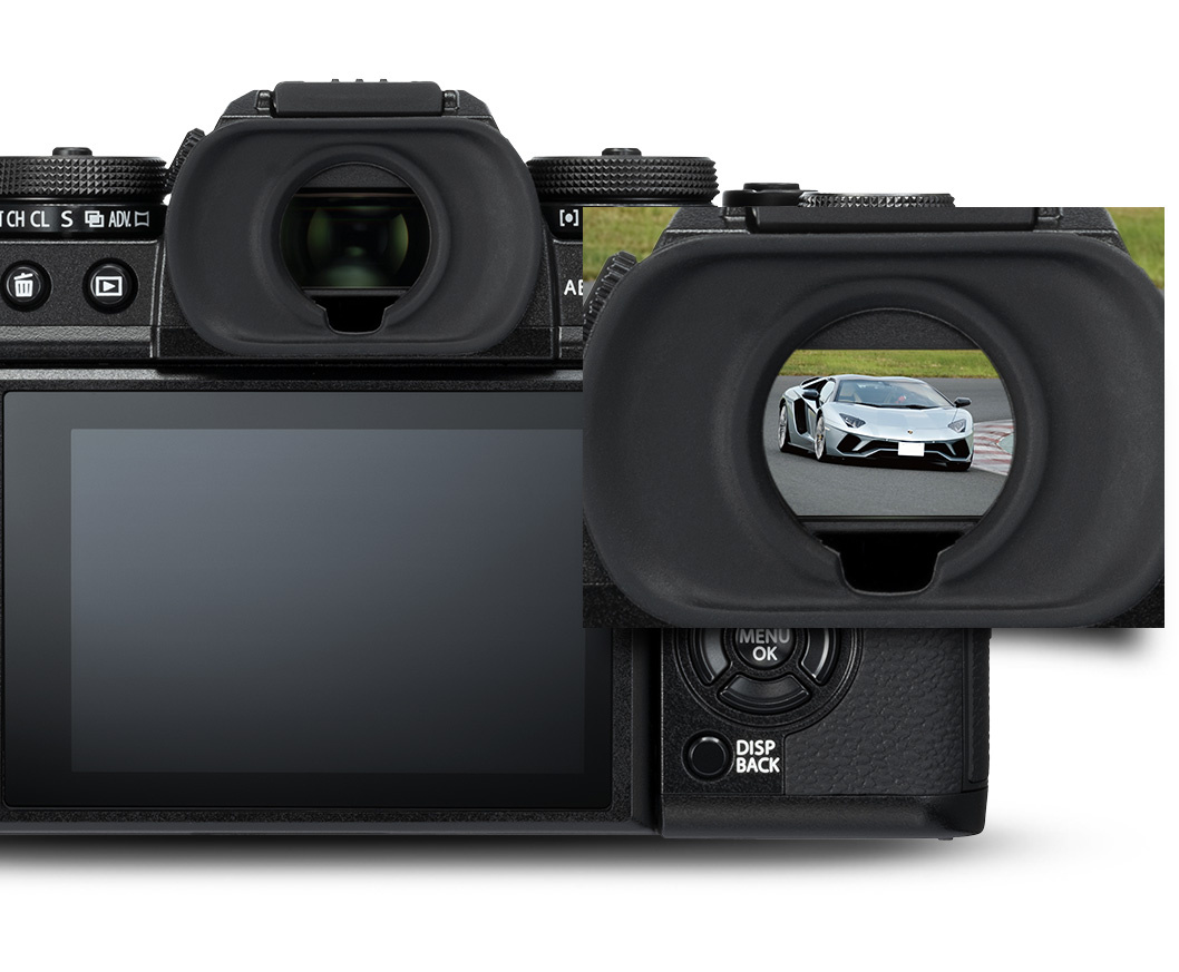 X-T3 menghadirkan 3,69 juta titik EVF beresolusi tinggi yang dilengkapi dengan rasio pembesaran hingga 0,75x. Jeda waktu display hanya 0,005 detik dengan refresh rate mencapai 100fps untuk memastikan display yang halus serta untuk mengidentifikasi pergerakan objek dan posisi fokus yang akurat.